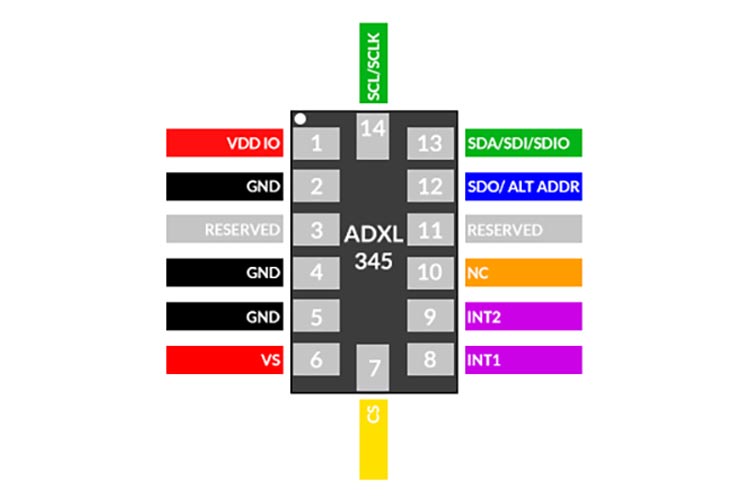 The ADXL345 is an ultra-low power, small 3-Axis MEMS digital accelerometer. The ADXL345 offers a high resolution of 13-bit in its measurements at up to ±16g. It can also be interfaced with either SPI or I2C protocols. It measures the static acceleration as well as dynamic acceleration during a movement. As the name suggests, the ADXL345 has three axes of measurement. The sensitivity level of the chip can also be configured to either ±2g, ±4g, ±8g or ±16g. The lower range gives more resolution for slow movement, while the higher range is optimal for tracking high speed movements. The maximum voltage applied to the VS and VDD io pin should not exceed 3.3V.