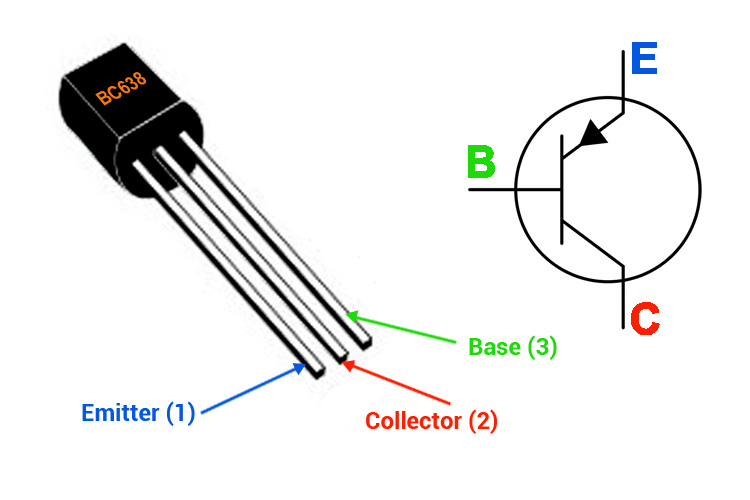 Transistors are current-controlled devices so to turn them on a little current is needed. For the BC638 Transistor, this base current is less than 50mA, as BC638 is a PNP transistor that means it will be on when the base is connected to the ground, and it will be off when a positive voltage is applied to the base of the transistor.