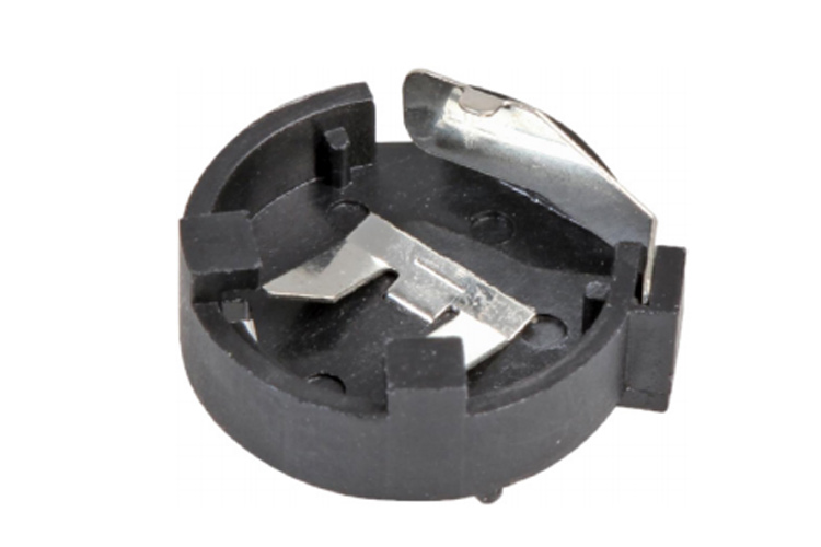 The CR1225 battery Holder is a small and compact device designed to be used as RTC backup and SRAM backup for GPS units. This holder holds the battery in place with friction. The outside contact housing connects to the positive terminal of the battery and the bottom terminal is connected to the negative side of the battery.