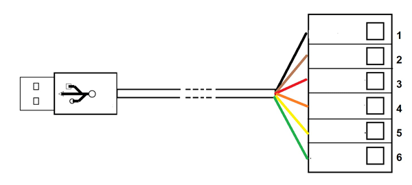 As shown in FTDI cable pin diagram, one end of FTDI cable is connected to USB and other end we have six output pins. These six pins are RS232 output. The function of each pin is stated in below table.