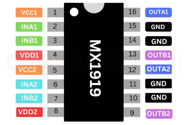 Here are the pinout details for MX1919.