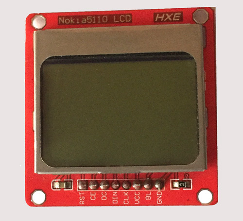 As the name suggests, this module was originally developed to be used with the iconic Nokia 5110 mobile phone. So it is capable of displaying alphanumeric characters, draw lines and other shapes and even displays a bitmap image. All this is possible because of its (84×48) monochrome pixels.