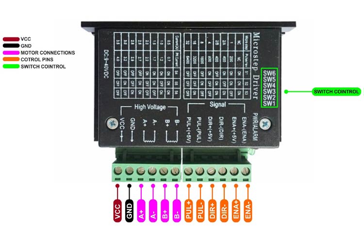 Pin Configuration of TB6600 Stepper Motor Driver Module